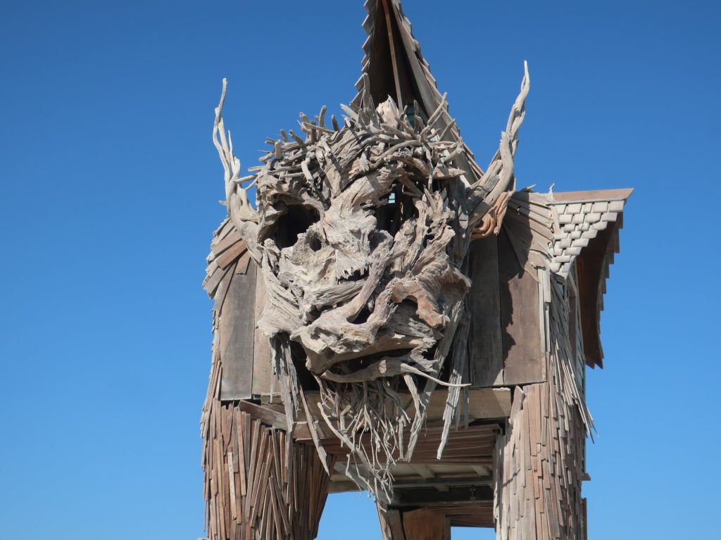 そこで私が最初に体験したことのひとつは、ドラゴンの格好をした2階建てバスのアートカーに乗ったことだった。 そのバスは私をキャンプ地まで運んでくれたが、今でも肌に感じる太陽の暖かさ、砂漠の風になびく布の柔らかさ、そしてあのドラゴン・バスの不思議な、ほとんど生きているかのような魂を感じることができる。