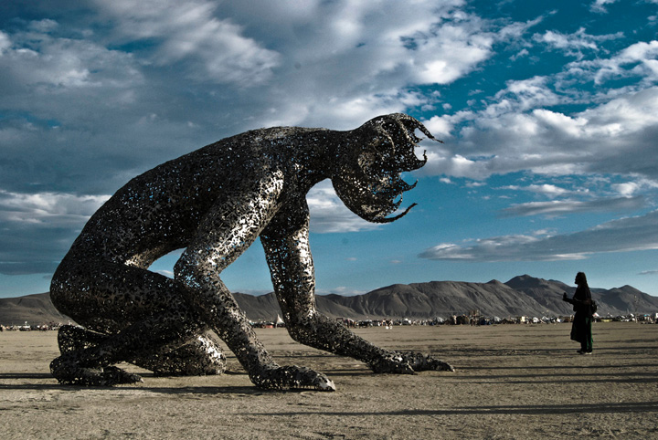 以前、創設者が私に、人間の燃焼は魂の解放を象徴していると話していたのを覚えている。 しかし、その魂は誰に解放されるのだろうか? もしバーニングマンの要点が恍惚の中で魂を解放することだとしたら、魂はどこへ行くのだろうか? そして、それは誰に送られているのか? 私は悪魔学の初心者だが、ここには明らかに危険な何かが働いている。
