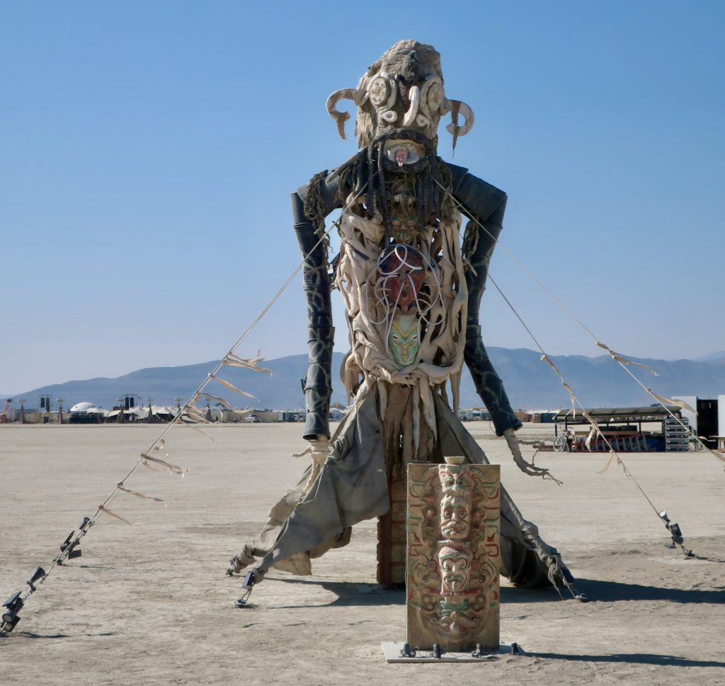 2024年には、巨大なクリトリスが祭壇として飾られ、2015年には、動脈がデジタル機械のように配線された子供の下半身の像、2023年には、かつて人間の生け贄として崇拝されたマヤの雨の神、チャックが飾られていた。 ブラック・ロック・シティにはこのような作品が何百と点在しており、毎年、何か新しい変態的な作品が登場する。 私の理解では、これらのアート作品は、バーナーたちが体験するためのイベントへの “お供え物 “と考えられている。