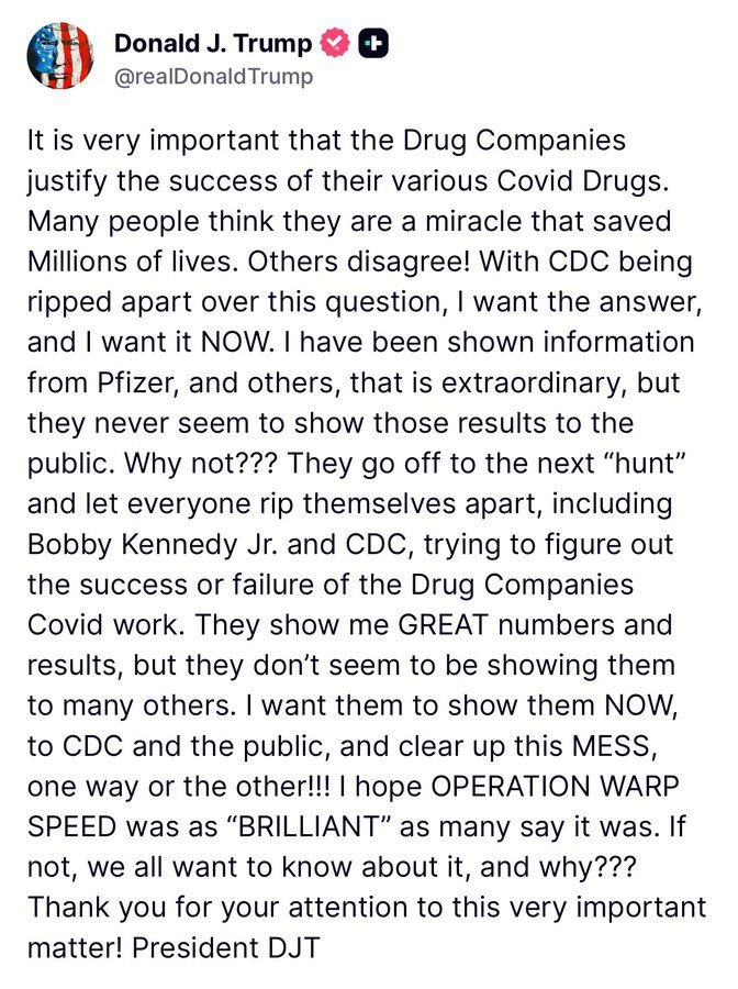 彼らは次の「獲物」へと移り、ボビー・ケネディ・ジュニアやCDCを含む誰もが、製薬会社のCOVID対策の成否を解明しようと互いに激しく論争するのを放置している。私に示された数字と結果は素晴らしいものだが、他の人々にはほとんど公開されていないようだ。今すぐCDCと公衆に公開し、この混乱を何らかの形で解決してほしい!!!