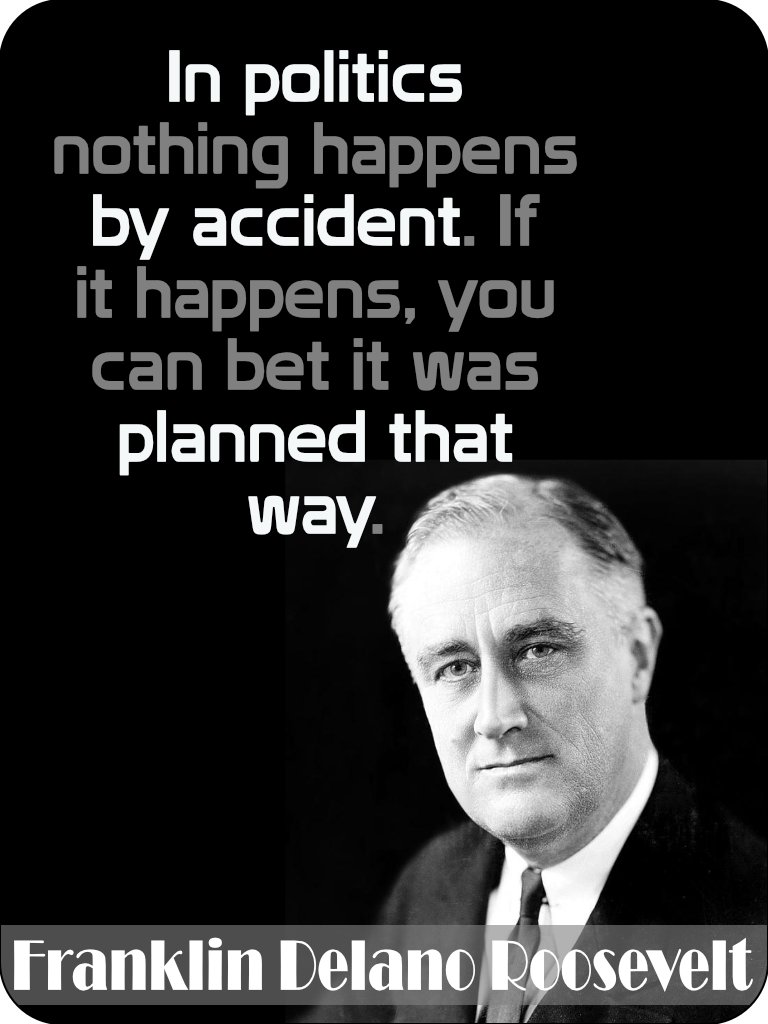 “政治においては何事も偶然には起こり得ない。もし起きたら、それはそう仕組まれていたと賭けて良い“ – フランクリン・ルーズベルト