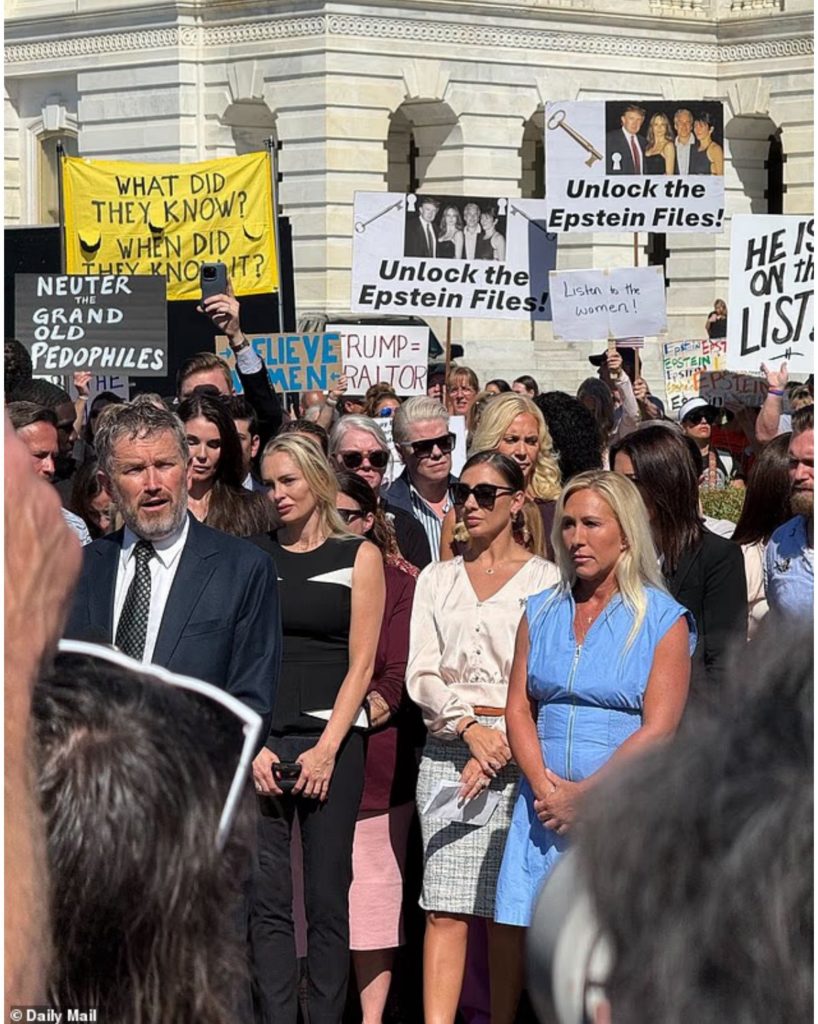 今日のジェフリー・エプスタイン生存者記者会見で掲げられた看板を見てください——ほとんどすべての看板がトランプ大統領を攻撃しており、その多くが彼を小児性愛者だと誤って非難しています。 これらの看板には、エプスタインの本当の顧客や共謀者の名前が一つも見当たりません。たとえば、エプスタインの親友で連続して小児性愛者の島を訪れていたビル・クリントンなどです!