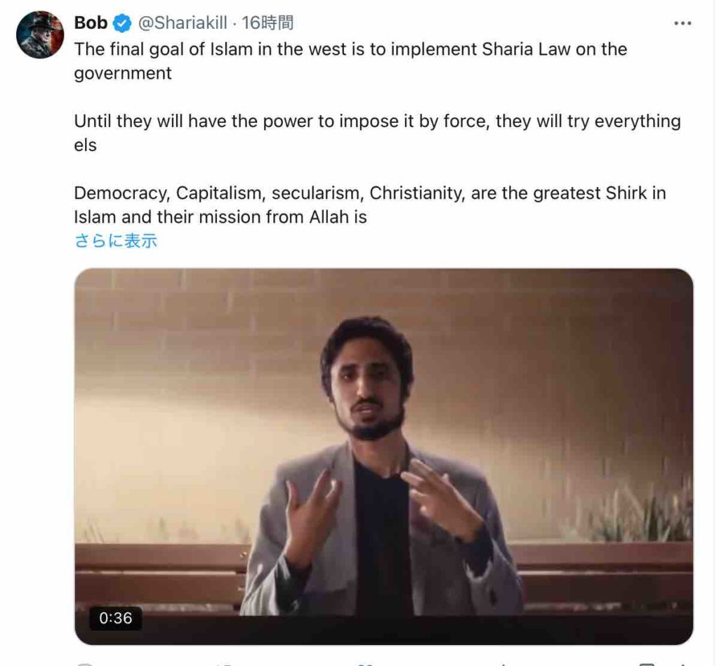 イスラム教の西洋における最終目標は、政府にシャリーア法を導入することです。 彼らが力によってそれを強制する力を持つまでは、ほかのあらゆる手段を試みます。 民主主義、資本主義、世俗主義、キリスト教は、イスラム教における最大のシルクであり、アッラーからの彼らの使命は、それと戦い、破壊し、置き換えることです。