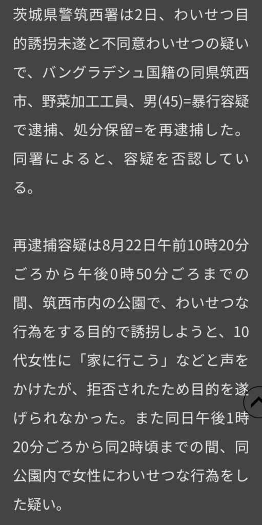 そして茨城県ではバングラによる強姦未遂の猥褻犯罪