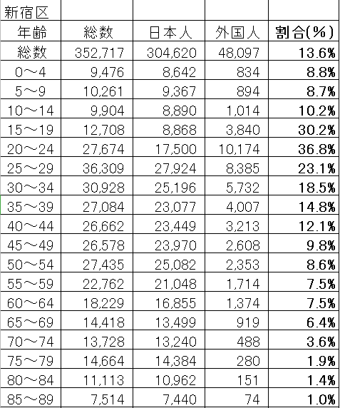 新宿区や豊島区は人口の13~14%が外国人とのことですが若年世代に絞って計算すると、恐ろしい結果となるでしょうね。