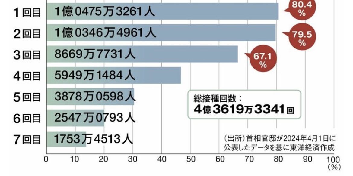 - 日本の厚生労働省からのワクチン接種数。