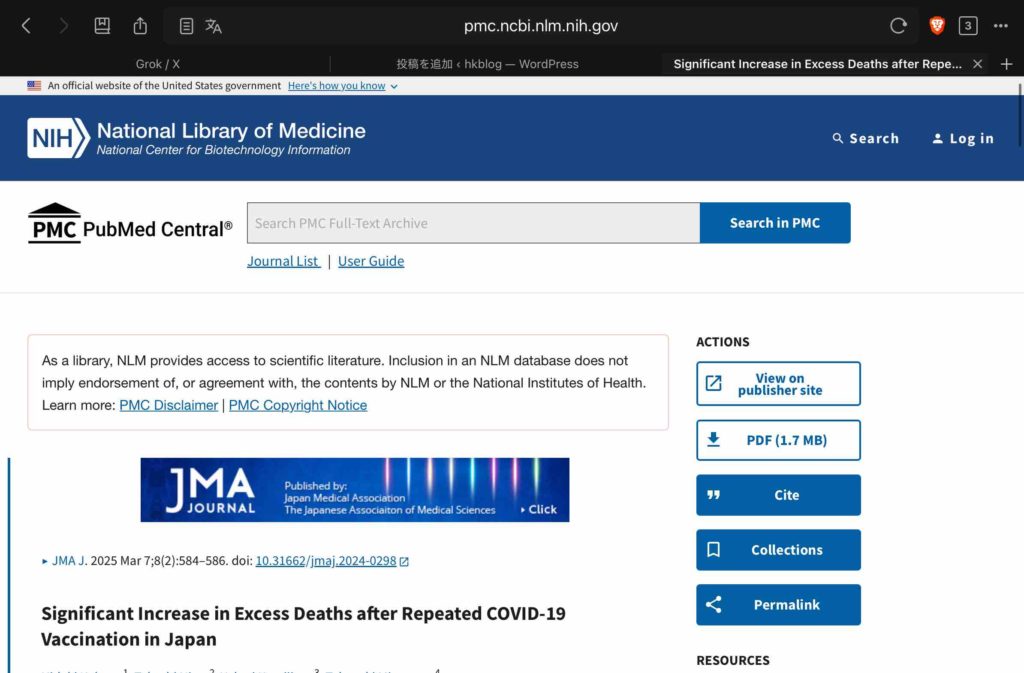 「日本における繰り返しCOVID-19ワクチン接種後の超過死亡の有意な増加」 (PMC12095670)