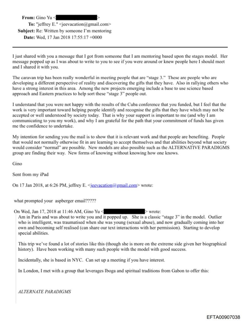 エプスタインは、トラウマを与えることで超能力を持った人間を作り出すことや、人間のクローン/デザイナーベビーのことを話していた