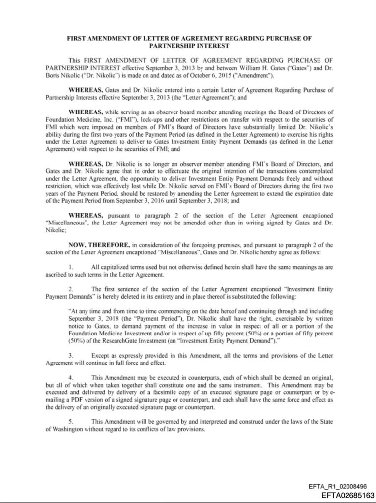 2013年8月(エプスタイン有罪判決から5年後)、ゲイツ宛の合意書: