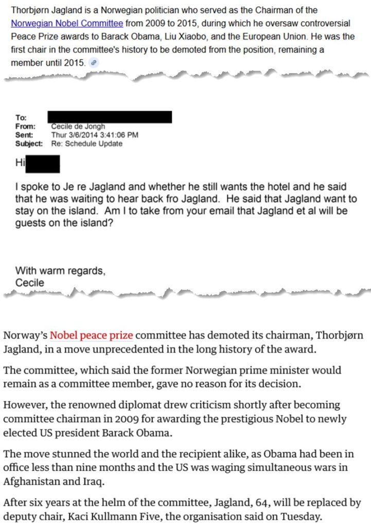 2009年に新しく選出されたバラク・オバマに衝撃的な形でノーベル平和賞を授与し、2009年から2015年までノーベル委員会の委員長を務めた人物は、エプスタイン島の常連でした。Zerohedge