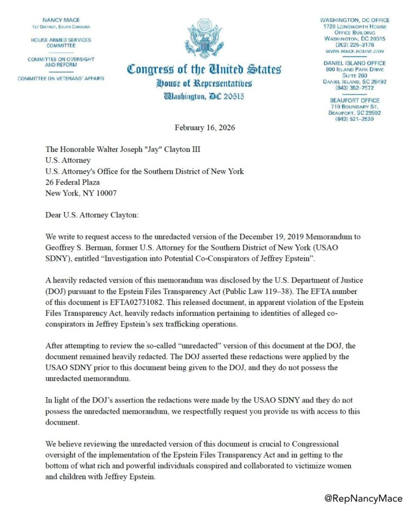 司法省が、SDNYによってすでに黒塗りされた状態でメモを受け取ったと主張する場合、私たちは直接情報源に当たります。共謀者を保護することは、エプスタイン・ファイル透明性法の違反に過ぎず、容疑のある児童捕食者を守ることにもつながります。SDNYには説明すべきことがあります。