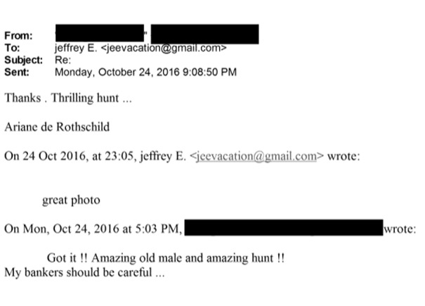 アリアーヌ・ド・ロスチャイルドからエプスタインへの「Thrilling Hunt」メール