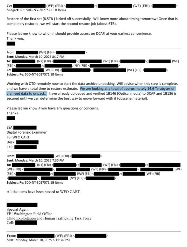 エプスタイン文書:FBIはエプスタイン事件で14.6テラバイトのアーカイブデータを発見。「猥褻な素材」を含むもので、彼らはまだそれにどう対処するかを決めかねている。