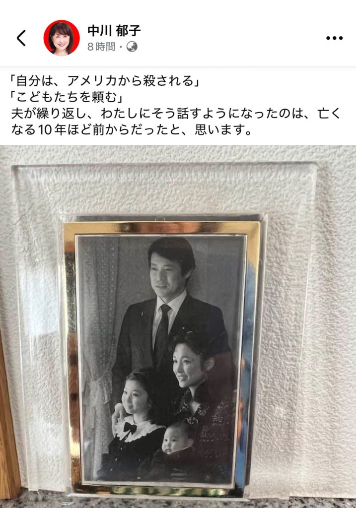 中川氏の妻郁子さんのFacebook投稿