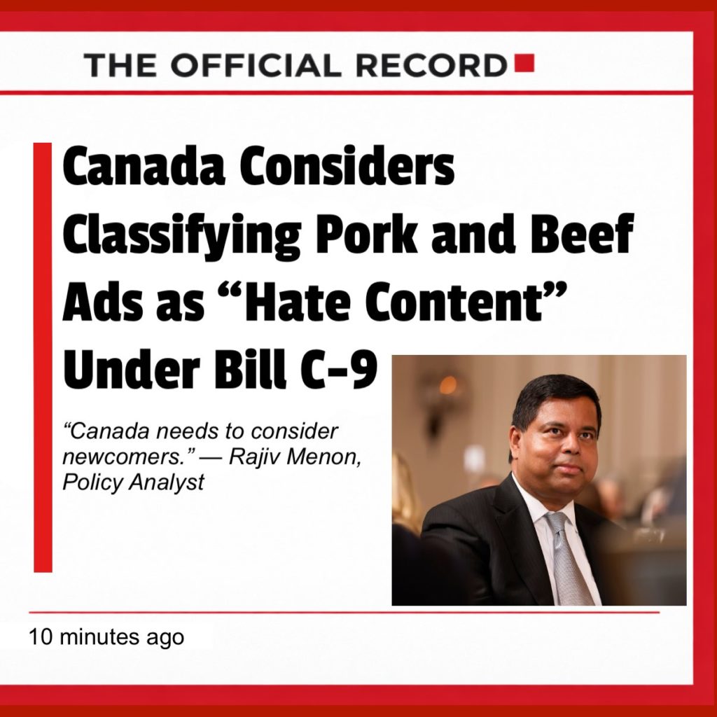 カナダ、法案C-9に基づき豚肉と牛肉の広告を「ヘイトコンテンツ」として分類することを検討中