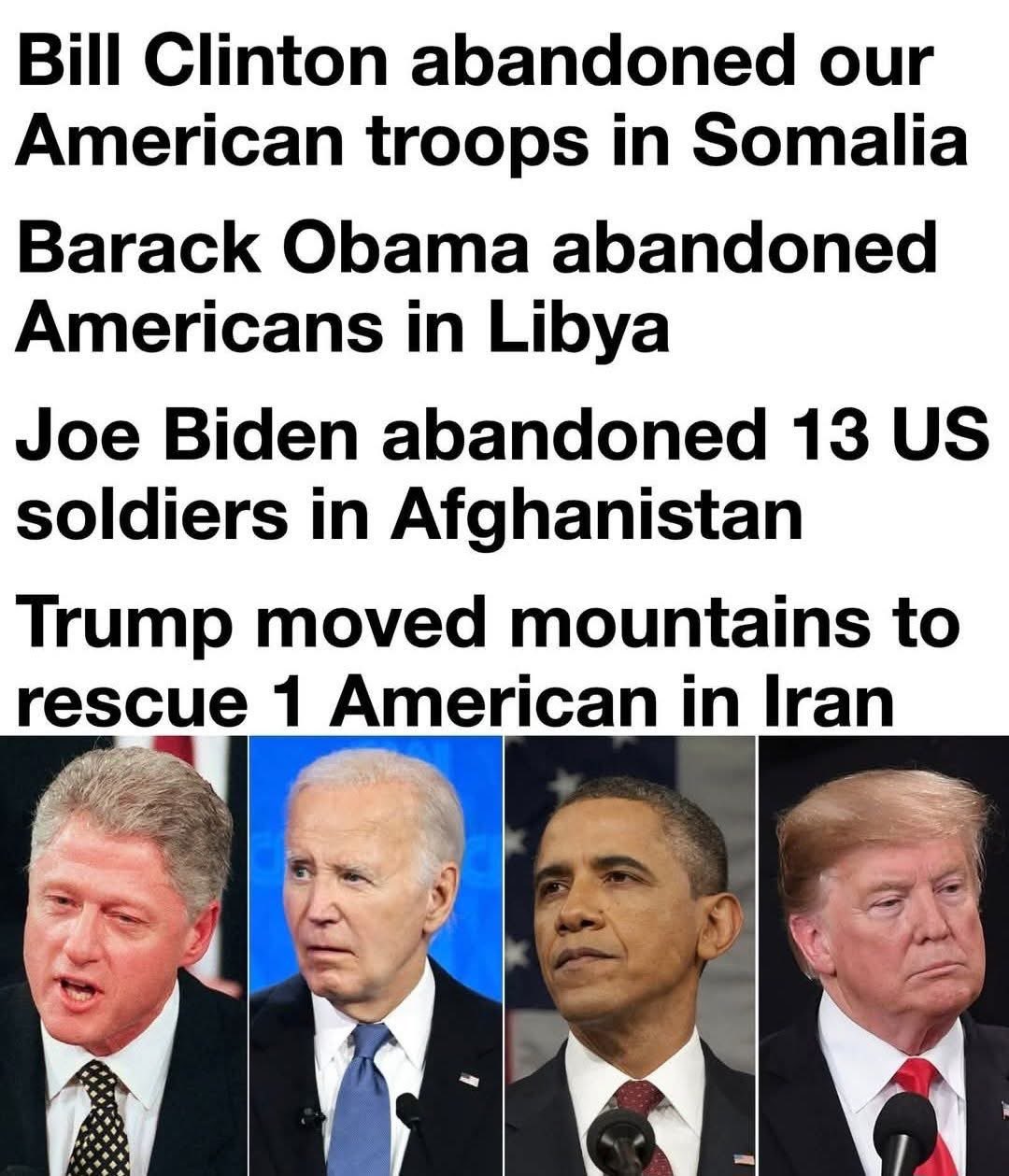 他の大統領は兵士たちを見捨てた、トランプだけが一人の兵士を救出するために山々をも動かした
